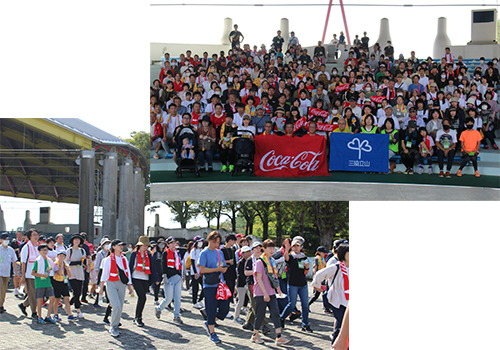 2022年から Coke ONアプリを活用したウォーキングイベントを開催しています。運動習慣のきっかけ作りや、日頃は接点のない社員同士や家族同士が交流を深める機会となり、従業員が健康で楽しく働くことをサポートしています。2023年秋には、三協立山株式会社様と共同でウォーキングイベントを開催し、メディアでも取り上げられました。