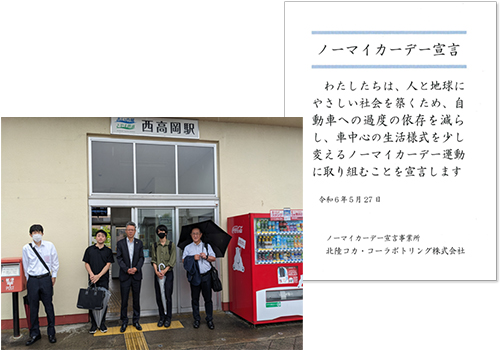 高岡市が推進する脱炭素社会に向けたまちづくりへの貢献と社員の健康増進に寄与するため、高岡本社で勤務するマイカー通勤者を対象に、「ノーマイカーデー」を毎月第2・第4金曜日に実施しています。