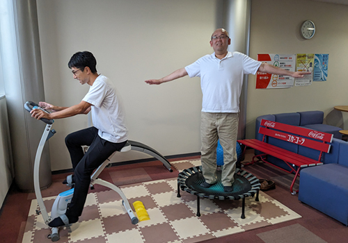 運動器具を使って気軽に身体を動かしてリフレッシュできる運動スペースを職場内に設置しています。