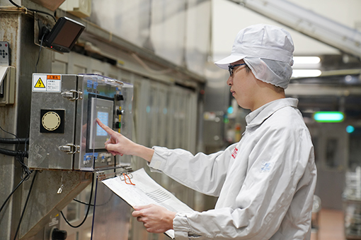 生産設備の保守計画の策定と実行を行いながら、リサイクルや二酸化炭素排出量削減など、環境負荷低減に繋がる改革にも積極的に取り組んでいます。