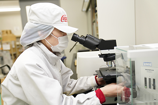 品質管理部門では、原料の選定から製造、出荷に至る全工程で、最高品質の製品を維持し、清涼飲料のトップブランドとしての価値を守り続けています。
